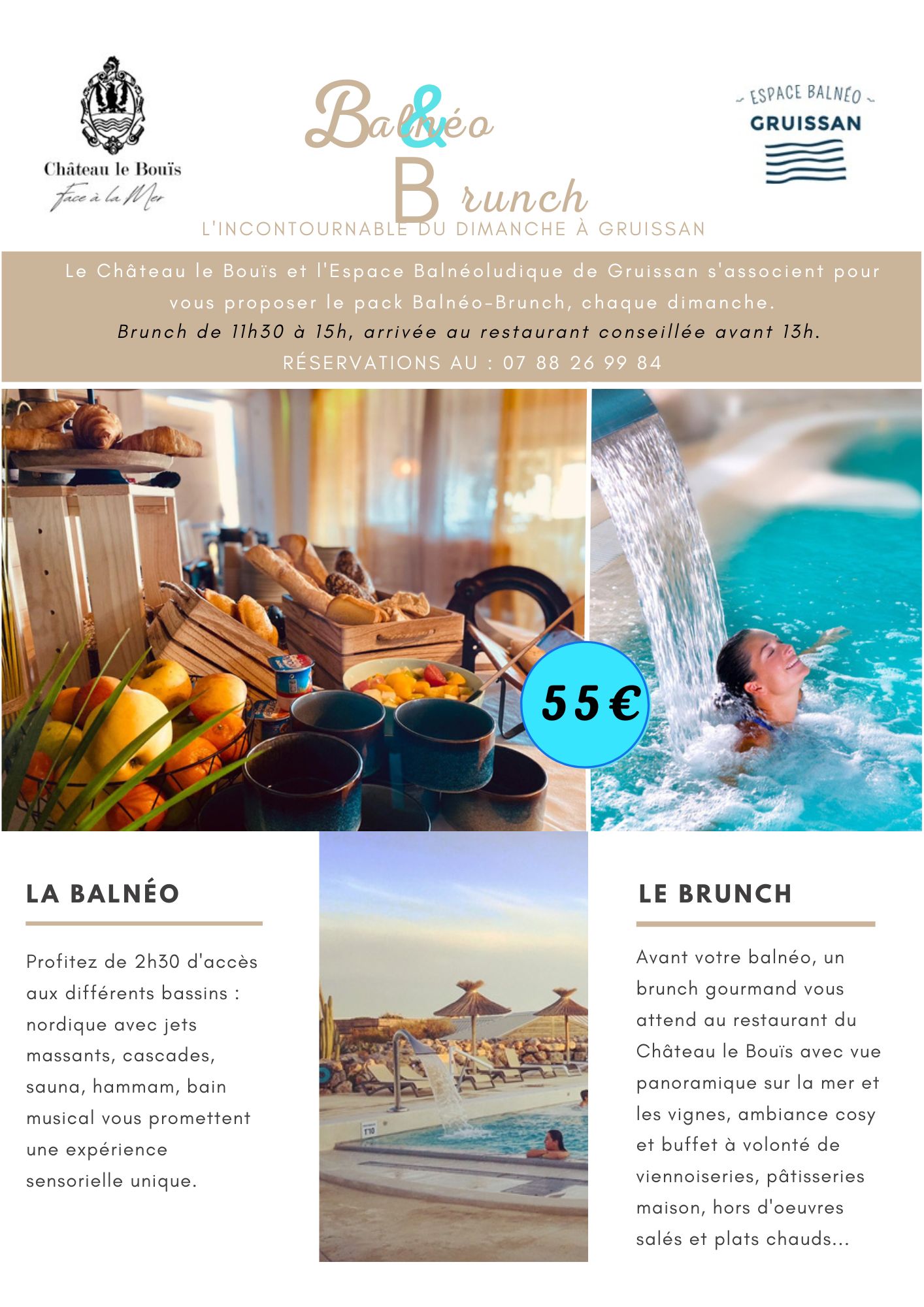55 € le pack (brunch + balnéo) par personne